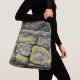 Parede de pedra. Pedras empilhadas em várias formas. As pedras das cinzas são cobertas de musgo verde e vermelho (líquens).