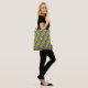 Pena amarela com variados tons de cor. A pena é definida em um ângulo e colocada sobre um fundo azul claro.