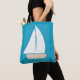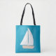 Esta bolsa de tote foi projetada com uma representação de arte em papel de um veleiro branco, e está pronta para a praia, piscina ou qualquer outro destino.