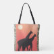 Esta bolsa de tote foi desenhada com a minha representação de duas girafas silenciadas por um céu pôr do sol laranja.