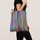 Esta adorável bolsa de tote listrada multicolorido é 16x16 com uma correia de 28 polegadas. O saco é poliéster e a correia é 100% de algodão. Apenas manchas ou limpas secas.