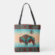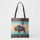 Este é um único "Um dos tipos", no sudoeste de Buffalo Tote Bag! Ele apresenta um Buffalo Sudoeste ou Bison e Sol em um Fundo Turquesa e Sunset Laranja... cercado por Fronteiras Sudoeste em Turquesa, Laranja e Negro! Este é um Design de Arte Gráfica Original do Artista Kerry Miller.