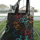 Um design de padrão de bicicletas de cores diferentes em um saco de tote preto