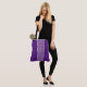 Bolsa com estilo Tote, grande em padrão de chalé roxa e laranja.