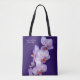 Saco de tote para flores e plantas, ou o que quer que você precise. A bolsa tem Orquídeas, editadas, em um fundo roxo. Você pode mudar as palavras na frente da bolsa.