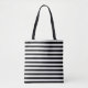 Esta bolsa de tote de tamanho médio na moda é mostrada em um estilo de listras brancas e pretas. Personalize este item ou comprar como está.