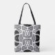 Tote Bag, um design clássico de cor branca e preto vibrante e elegante. Um na moda criativo, atraente, moda, design de Tote bag. Um saco versátil projetado para uso diário, com alças espaçosas interiores e resistentes para os carregandos, com facilidade e acessório moderno para qualquer ocasião.