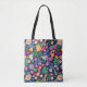 Tote Bag With Black Background Floral Design