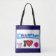 Medium-sized fabric bag with an interesting graphic print. Made of durable polyester, with cotton handles and laminated lining.