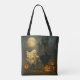 Trabalho de arte de Halloween encantador de dois fantasmas alegres andando de bicicleta à noite, rodeados por abóboras e brilhando sob a lua de cheio. Perfeito para camisetas, sacos de tote, papelaria e presentes de Halloween.