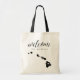 Bem-vindos convidados para o seu casamento no Havaí com estas mochilas modernas e personalizadas. Design apresenta "bem-vindo" no moderno roteiro de caligrafia manuscrito, com suas iniciais unidas por um coração, juntamente com sua data de casamento, dentro a um mapa negro da silhueta do estado do Havaí. Personalize com um nome específico da cidade ou local do Havaí, se desejar.