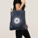 Padrão de carimbo de safra em azul em um bolsa que você pode personalizar com o seu inicial.