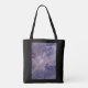 Bolsa do ombro com galáxia azul e roxa com estrelas brancas dispersas. Arte original de Ray Bean é aquarela em papel aquoso.