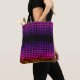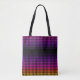 Um legal padrão geométrico em gradiente roxo, rosa e amarelo de verão num saco de tote de qualidade. Esta mochila moderna reutilizável faz uma adição colorida ao seu dia de trabalho. Personalizável na sua escolha de cor de fundo e opções de tamanho e estilo. Um bolsa de propósito ousado e atraente.