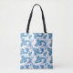 bolsa de tipo náutico com peixes, rebocadores, tartarugas, polvos, estrelas-do-mar, moluscos e textura global. Feito em azul e verde com um toque de cores quentes, este bolsa brincalhão é perfeito para um verão na praia. É inspirado por pinturas originais de Judy Sorrels.