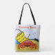Um dia na praia precisa de uma bolsa de praia. Esta sacola de cena de praia tem um caranguejo vermelho feliz, uma pilha amarela e uma pá, céus azuis e um golfinho feliz tocando ao fundo. Personalizável para que você possa alterar o texto/cor.