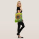 Esta bolsa do ombro tem um girassol grande e muito espaço.