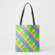Tote Bolsa de xadrez verde-claro, rosa, amarela e azul