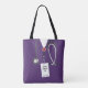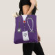 Bolsa personalizada para formatura ou escola de enfermagem com uniforme roxo de hospital. Para personalizar, edite o texto para adicionar o nome da enfermeira ou personalizar.