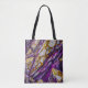 Um design abstrato em roxo, dourado e branco, que se assemelha a um terreno rochoso, cobre esta Bolsa de Ombro.