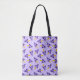 Um padrão de foguetes retro roxos e estrelas brancas.