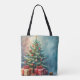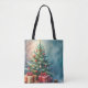 Traga a alegria do Natal em um saco de tote na moda, ecológico. Padrões de aquarela festivos fazem deste bolsa um encantador acessório de férias. Ideal para mercados de Natal, compra de presentes ou embrulhamento de bens essenciais de férias. Durável e prático com uma design de inverno nas terras maravilhosas. Adicione um salto de cor sazonal com este belo bolsa de cor d'água com o tema natalino.