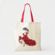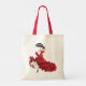 Dançarina bonito de flamenco vestida de vermelho com ventilador decora ambos os lados deste bolsa de compro.