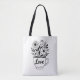 Belo design minimalista em preto de flores em uma xícara de chá com a palavra Amor. Belo saco de tote para uso diário. As mulheres vão gostar de usar este saco de diversão ou de dar a um amigo.
