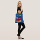 Sobre a bolsa de tota de ombro com imagem de um céu colorido de arco-íris com nuvens e estrelas. O trabalho artístico original é gravado no conselho da canvas.