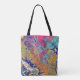 A turquesa brilhante, o azul, o rosa quente, o roxo e o amarelo fazem um design fantástico neste bolsa. Irá com apenas aproximadamente qualquer coisa. O design é adaptado da pintura feita pela alegria Lomenick.
