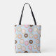 Os amantes da rosquinha unem-se! Este bolsa dos bens caracteriza um teste padrão bonito da rosquinha, completo com polvilha e variedades múltiplas de glacé.
