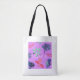 Um saco de tote vibrante e atraente que combina padrões botânicos ousados com uma estética moderna e lúdica. A combinação de folhas tropicais sobredimensionadas em tons contrastantes de verde, marinho, coral e roxo contra o fundo lilático dá-lhe uma sensação viva e artística. A palavra "Vertical" em branco nítido, a letra elegante adiciona um toque sofisticado enquanto partilha uma mensagem do evangelho para iniciar conversas significativas.