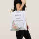 Este bolsa caracteriza quadros florais do azul francês com a escritura de inspiração encontrada no 31:30 dos provérbio - "uma mulher que o feareth o senhor, ela estará elogiado." (KJV)