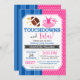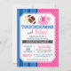 Jogue touchdowns divertidos e uma festa de aniversário de criança de tutus usando estes convites bonitos. Este design apresenta um futebol, tutu, listras azuis e bolinhas cor-de-rosa. Personalize facilmente com seus detalhes de eventos.