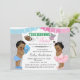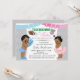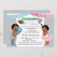 Touchdowns ou sexo de tutus revelam convites para bebês no chuveiro com adoráveis meninos de etnia africana-americana e meninas em um fundo de cozinha de cinza bonito com faixas cor-de-rosa e azul. Este touchdowns bonitos ou o convite para chá de fraldas de tutus é facilmente personalizado para o seu evento simplesmente adicionando os seus detalhes.