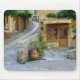 Mousepad com um townscape francês típico com uma parte dianteira da loja do gourmet e as ruas do cobblestone na cidade tradicional Beynac-e-Cazenac ao longo do rio na região de Perigord, France de Dordogne.
