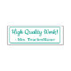 Este design de carimbo positivo apresenta a inspiradora mensagem de feedback "Trabalho de alta qualidade!" e um nome de tutor personalizado. Ele poderia ser usado por um professor de escola, educador, instrutor ou tutor ao marcar tarefas, para indicar que um aluno fez bem.