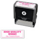 Este design de carimbo positivo apresenta a encorajadora mensagem de feedback "ALTA QUALIDADE TRABALHO!" e um nome de professor, educador ou orientador personalizado. Poderia ser usado por um professor ou educador ao marcar missões, para reconhecer que o aluno fez bem.