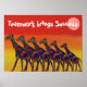 Pintura gráfica de um bando de girafas que se movem ao pôr do sol da noite. Você pode personalizar este poster e adicionar seu próprio ditado motivacional para sua sala de aula ou qualquer ambiente.