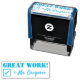 Este design de carimbo divertido apresenta a inspiradora mensagem "EXCELENTE WORK!" e o nome de um professor personalizado. Também apresenta uma marca de verificação decorativa. Ele poderia ser usado por um professor, educador ou orientador ao marcar trabalhos, para indicar que um aluno fez bem.