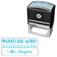 Este design de carimbo inspiracional mostra a mensagem motivadora "MARVELOUS WORK!" e um nome de professor personalizado. Ele também apresenta um caverno embaçado decorativo. Poderia ser usado por um professor ou educador ao marcar missões, para reconhecer que o aluno fez bem.