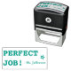 Este design de carimbo divertido apresenta a mensagem positiva "PERFECT JOB!" e um nome de professor personalizado. Ele também apresenta uma forma decorativa de estrela. Poderia ser usado por um professor ou educador ao marcar missões, para reconhecer que o aluno fez bem.
