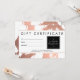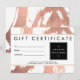 Coordena-se com o Abstrato Rosa Dourado Brushstrokes no Modelo de cartão de negócios Branco até 1201AM. Este design de certificado de presente personalizado apresenta um fundo falso rosa-gold de pinceladas pareadas com um logotipo de placa preta para guardar o seu nome ou nome comercial. Este design faz parte de uma coleção de materiais de coordenação de marketing para ajudar a marca da sua empresa. Arte original e design © 1201AM CREATIVE
