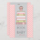 Uma coruja pequena adorável é empoleirada sobre uma pilha de livros nas máscaras de cor-de-rosa e de verde neste convite bonito para um chá de fraldas do trazer-um-book para um bebé. O texto na parte traseira tem o texto da amostra para pedir que os convidados igualmente tragam a história das suas crianças favoritas para ligar Mamã-à-estar em criar a biblioteca do bebê. Em cinzas na moda e no rosa bonito com um fundo modelado bolinhas, este design bonito é certo satisfazer todas as mamães novas. Igualmente disponíveis estão as etiquetas do bookplate para incluir no convite para o cada convidados assinar e etiquetar seus presentes do livro.