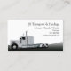 Um caminhão de semirreboque e uma curva preta formam o fundo da imagem principal desse cartão de visita dedicado à indústria de transporte e transporte. Seu nome e os detalhes de contato aparecerão corajosamente no canto superior direito. O cartão de chamada perfeito para motoristas de caminhão.