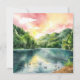 Tranquil Watercolor Mountain River Sunrise