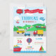 Cartões de Convite para Transporte Vibrantes, com carros coloridos, caminhões, ônibus, navios, barcos, aviões, helicópteros e todas as coisas que se movem. Personalize este incrível convite para o transporte com o nome, a idade e os detalhes da festa do seu filho, de forma fácil e rápida, basta pressionar o botão personalizar para reorganizar e formatar o estilo e a colocação do texto. Inclui um design de convite correspondente. (c) Os rótulos disponíveis para garrafas de água Feliz Cat Studio Correspondente. https://www.zazzle.com.au/transportation_birthday_party_water_bottle_labels-256915769913404832 Sinal de boas-vindas correspondente https://www.zazzle.com.au/transportation_birthday_party_welcome_sign_poster-228407633785042004