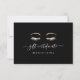 O cartão de certificado de presente de chip exibe duas linhas de texto personalizado recortadas por um par de lascas e sobrancelhas esas em folha de ouro falsa em um fundo preto. Adicione o texto desejado do certificado-presente e as informações de contato comercial no verso, acompanhadas por um par de pestanas e sobrancelhas correspondentes. Uma escolha moderna e elegante para salões, maquiadores, esteticistas ou especialistas em lash and brow.
