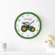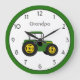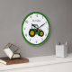 Relógio redondo personalizado da criança de um trator azul e verde.