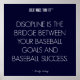 Um poster de baseball motivacional com uma citação de Felicity Luckey of Excelente Minds Think Ajustado™. Há 8 citações de baseball nesta série. Todas as citações estão disponíveis em adesivos, posters, ímãs de geladeira e relógios de parede. A citação de beisebol neste poster diz: "DISCIPLINE É A PONTE ENTRE SEUS OBJETIVOS DE BASEBALL E SUCESSO DE BASEBALL." ~ FELICIDADE SORTE
